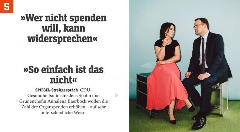 Am 21.06.2019 hat der Spiegel ein Streitgespräch zwischen den Abgeordneten Baerbock und Jens Spahn unter dem Titel „Baerbock und Spahn streiten über Organspenden – „Widersprechen: So einfach ist das nicht“ veröffentlicht. Auf diesen Artikel bezieht sich der folgende Leserbrief von…